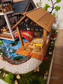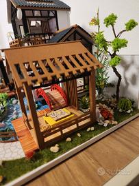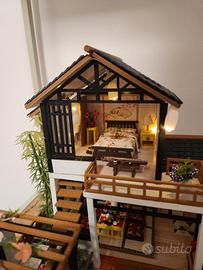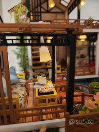 Bellissima casetta artigianale in stile giapponese, realizzata con materiali di riciclo, abbellita da una serie di lucine alimentate a batteria. I dettagli curati ne fanno la differenza. Disponibile ad ulteriori foto visto il limite di 6 dell'annuncio. Misura 19,5 cm x 22,5 cm ed è alta 19 cm. Molto bella da esporre in soggiorno come complemento d'arredo o nelle festività natalizie.