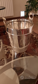 SECCHIELLO ghiaccio per bottiglie in alpacca argentata. Misure: altezza senza manici cm 22, con manici cm 27, diametro cm 20 e diametro alla base cm 14.