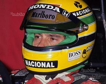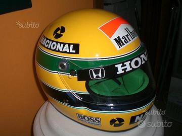 -replica Senna 1991 con sponsor come da originale, perfetta riproduzione considerando che anche la forma del casco e l'interno verde è fedele come quella dei tempi.