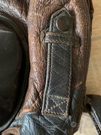 Casco da volo invernale della Luftwaffe (Fliegerkopfhaube). Un casco da volo invernale della Luftwaffe estremamente ben conservato, realizzato con una calotta in pelle marrone scuro. Presenta un cinturino retrattile in cotone marrone che fuoriesce dalla parte posteriore della calotta e si chiude con una fibbia metallica magnetica funzionale, mentre la parte posteriore è fiancheggiata da due cinturini in pelle integrali che culminano in pratici bottoni automatici per l'alloggiamento di una maschera per l'ossigeno. Il casco è fiancheggiato da auricolari rinforzati e presenta sottogola bifacciali che si uniscono a fibbie metalliche magnetiche che fuoriescono dai lati opposti. L'interno è completamente foderato con uno strato di spessa lana bianca, un po rovinata dall’usura e dal tempo. La fodera presenta doppie etichette, tra cui un'etichetta Siemens rovinata con il codice parzialmente leggibile "LKP W 10", che indica che il casco è destinato all'uso in rigide condizioni invernali. L'altro reca il marchio del produttore "STRIEGEL & WAGNER, LICHTENFELS/BAYER. OSTMARK". Questo casco da volo di alta qualità, che presenta solo lievi segni di sporco e usura, coerenti con l'età e l'uso in tempo di guerra, si presenta in condizioni quasi eccellenti.