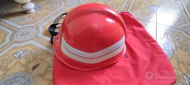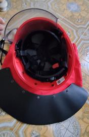 Casco PAB Compacta per Vigili del Fuoco, di colore rosso. Elmetto Vigili del fuoco, PAB Compacta -Personal Protective Equipment, con visiera protezione viso e protezione per il collo, certificato di autenticità e norme di sicurezza, nuovo mai utilizzato con sacca in tessuto.
