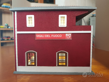Caserma vigili del fuoco a tre ingressi ; con alloggi annessi per il personale di turno e luci interne.