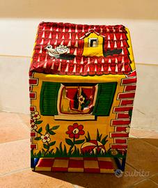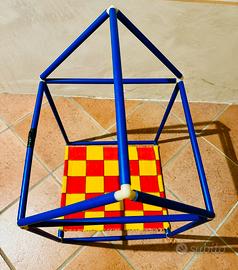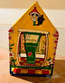 Checchina: casetta per bambini anni ‘80 come da foto. Struttura in tubi cavi in plastica leggera blu e rivestimento in stoffa lavabile. Presenti tutti i pezzi: facile da montare e smontare.