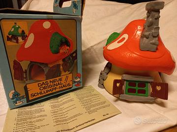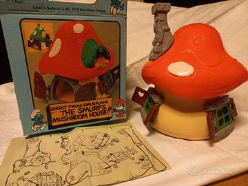 Casetta di Grande Puffo, vintage originale, in perfette condizioni, completa in ogni sua parte, compresa di scatola e foglio istruzioni. Made in Hong Kong.