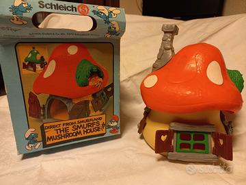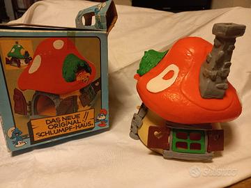 Casetta di Grande Puffo. Vintage originale, completa in ogni sua parte, in perfette condizioni. Con scatola originale ma SENZA foglietto istruzioni. Made in Hong Kong. Anno 1976.