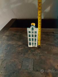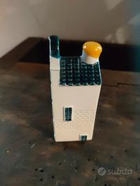 miniatura in ceramica da collezione riproduzione fedele di una tipica casa olandese dipinta nel classico stile blu di Delft