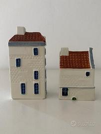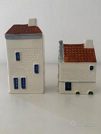 Casette in ceramica originali rispettivamente cm. 5 e cm. 9 base/inizio tetto con camino aperto utilizzabile per fiore, segnaposto...