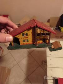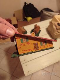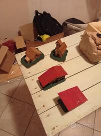 casette di legno fatte a mano a traforo, anni 60 per paesaggio per treni.