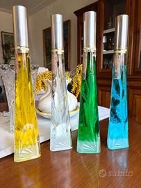 Lotto 4 bottiglie vintage Casoni - liquori cristallizzati anni '60/'70 Splendido set composto da 4 bottiglie originali Casoni: • Millefiori (giallo) • Sambuca (trasparente) • Genepy (verde) • Paradyse (azzurro) Bottiglie decorative vintage con caratteristica **cristallizzazione interna** che crea un effetto scenografico unico e molto ricercato dai collezionisti. Condizioni: * Etichette originali presenti e ben leggibili * Liquido ancora contenuto nelle bottiglie * Nessuna rottura o difetto evidente * Ottimo stato generale per l'età Note: Oggetti da collezione / arredamento vintage. Vendute come decorative, non si garantisce la consumabilità del contenuto. Pertette per: - collezionisti - arredamento retrò / vintage - vetrine, bar o esposizione