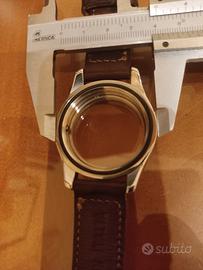 cassa in acciaio con cinturino in cuoio