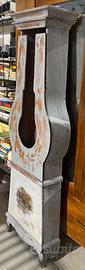 Antica cassa in legno per orologio a pendolo del 700,altezza 1 metro e 80 centimetri,nella part bassa si può ntravede un dipinto dell’epoca.