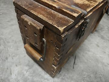 Cassa in legno militare italiana, prodotta nel 1963 dal prestigioso Stabilimento Militare Pirotecnico di Capua per lo stivaggio di cartucce a salve calibro 7.62