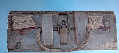 Si tratta di una cassetta per le munizioni di un mortaio tedesco da 80 mm realizzata in legno. Sono ancora presenti etichette originali con misure e informazioni, la vernice esterna è originale, l'interno in parte restaurato.