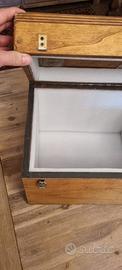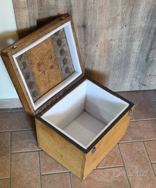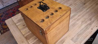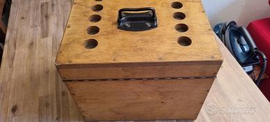Cassa termica vintage in legno per trasporto bottiglie (anni ’60) baule scatola Cassa termica vintage in legno per trasporto bottiglie (anni ’60) Originale cassa isotermica in legno, risalente indicativamente agli anni ’60. Utilizzata per il trasporto di bottiglie (vino, acqua o bibite) Il coperchio è dotato di fori di aerazione con retina metallica Condizioni molto buone: struttura solida, legno sano, chiusure funzionanti. L’interno è stato pulito. Oggetto ideale per collezionisti, arredamento vintage, enoteche o uso decorativo. rivestimento interno realizzato recentemente e totalmente removibile Misure: Altezza: 33 cm Larghezza: 40 cm Profondità: 32 cm Spedizione accurata o ritiro a mano.
