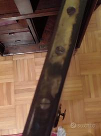 Antica cassaforte portatile da nave. In legno rinforzata con ferro, serrature funzionanti ma senza chiave. Misure: lunghezza cm 43 profondità cm 25 altezza cm 78.