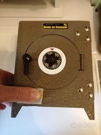 cassaforte vintage da tavolo o salvadanaio, originariamente prodotta come oggetto promozionale per la banca "Banco de Comercio". Presenta una serratura a combinazione meccanica rotante con numeri È realizzata in metallo con una finitura testurizzata di colore marrone/grigio. Il codice di apertura verrà fornito al compratore Sulla parte superiore è presente una targhetta metallica che recita "AHORRE EN EL BANCO DE COMERCIO". Il suo costo è 160 euro preferibile ritiro a mano Napoli Vomero NO PERDITEMPO