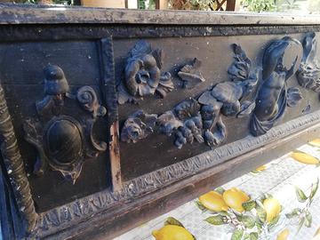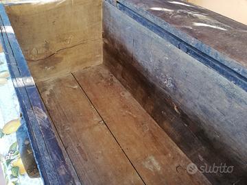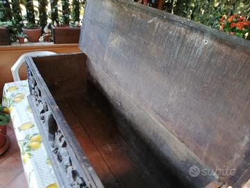 Vendo cassapanca nuziale molto antica, 1870 circa, da restaurare. A disposizione per info o altre foto. Legno massello. Le misure 141 x 50 alta 43. Solo ritiro a Roma.