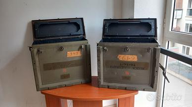 2 casse per telegrafi della seconda guerra mondiale, americane; condizioni buone; adatte per collezionisti o arredamenti in genere; vendibili separatamente; il prezzo è riferito all'intero blocco; misure: 53x22xh47cm.