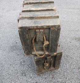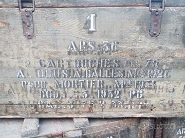 Casse per il trasporto di munizioni d'artiglieria calibro 75mm per mortaio modello 1931 (parecchio utilizzato nelle postazioni della linea Maginot in Francia).