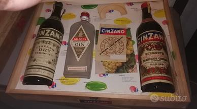 rara cassetta di bottiglie della Cinzano, con all'interno 2 Cinzano Vermouth dry e un Gilbey's gin e varie carte esattamente come da foto, buone condizioni, dalla cantina di mio nonno che sto vendendo, per cui credo abbia almeno 30 anni