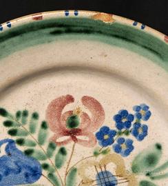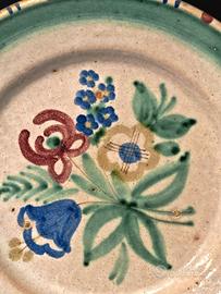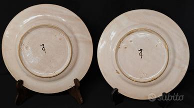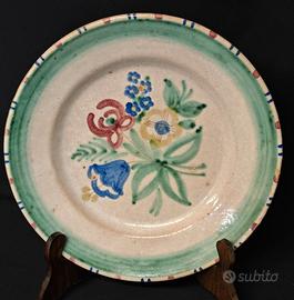 Cassetta Vietri – Coppia piatti ceramica vietrese – Maiolica antica anni ’30 – 25 cm Coppia di piatti in ceramica vietrese dipinti a mano, realizzati dalla manifattura “Cassetta” di Vietri sul Mare e databile tra gli anni ’30 e ’40. Presente un elegante decoro floreale policromo al centro, dipinto a mano incorniciato da una fascia verde verde ramina/o ✍️ Firmati con il tipico marchio di un cavalluccio marino stilizzato usato dalla manifattura all’epoca 📏 Diametro: 25 cm ✔️ Buone condizioni generali. Presenta evidenti segni di irregolarità e difetti di cottura, dovuti alla lavorazione artigianale dell’epoca. Presenti piccole sbeccature visibili in foto. ❕Disponibili anche di altre dimensioni. ( contattatemi per info e disponibilità) ✅ Spedizione sicura con imballaggio antiurto ✅ Per ulteriori informazioni non esitate a contattarmi Mercatino dell'antiquariato Tiriciclo , Salerno
