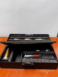 Cassetta valvole radio militare EI 1971 FIMETT CY-1031/URR verde oliva. VENDO VUOTA (o leggi tutto per opzioni) - ultime foto a titolo esplicativo del contenuto interno! Cassetta di riserva originale Esercito Italiano 1971 (F.I.M.E.T.T. Roma, contratto ministeriale n. 7206 del 7/5/71) per kit manutenzione valvole termoioniche di apparati radio militari veicolari/portatili 24V. Sigla CY-1031/URR = nomenclatura NATO per contenitori tecnici radio (Receiver-Transmitter unità). Serviva nei reparti trasmissioni EI come "scatola ricambio" da mezzo corazzato/carro o postazione fissa: conteneva valvole di emergenza (IF/RF/audio), vibratore DC-AC per filamenti e fusibili Buss per riparazioni sul campo. Caratteristiche uniche: Verde militare opaco standard EI, scritte bianche "latte" perfette Dimensioni compatte 25×10×8 cm, maniglia robusta, chiusura a frizione Interno TOP: Divisori lamierino zincato su misura per fissaggio vibratore/valvole cilindriche Imbottitura fustagno militare integra (no usura/strappi), qualche segno del tempo/uso Condizioni eccellenti, pronta display o uso workshop radioamatori Rara testimonianza equipaggiamento segnalazione EI anni '70 (era valvole prima transizione transistor). Perfetta collezionisti militaria italiana, radio vintage, surplus tecnico NATO. OPZIONE: possibilità di Kit completo con valvole Sylvania JAN-CHS, Mallory M575S 24V, Raytheon + fusibili disponibili a (chiedi informazioni per concordare eventuale prezzo). NB: le foto con gli elementi interni sono a puro scopo illustrativo dell'uso originale, il prezzo si riferisce alla cassetta vuota. prezzo trattabile, verificare stato da foto o contattarmi per ulteriori dettagli.