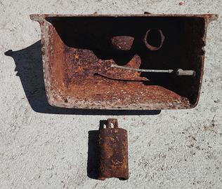 Vendo autentica cassetta di scarico WC in ghisa originale anni ‘50. Oggetto d’epoca con bella patina del tempo, ideale per: arredo industriale locali, bar, taverne progetti di recupero creativo Condizioni come da foto: presenza di ruggine e segni del tempo che ne valorizzano l’aspetto vintage. Non testata e venduta come oggetto decorativo. Incluso galleggiante originale. Ottima come elemento scenografico o da trasformare (lampada, fioriera, arredo). Consegna: Ritiro a mano o spedizione a carico dell’acquirente.