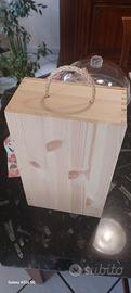 Elegante cassetta in legno vuota, perfetta per conservare bottiglie o come elemento decorativo.