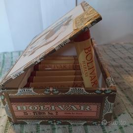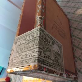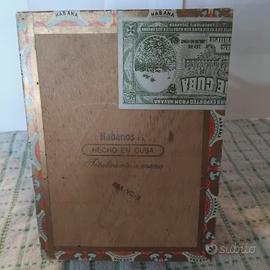 Cassetta in legno cubana in buone condizioni, contiene vari astucci vuoti in metallo .