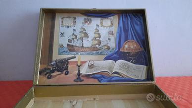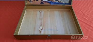 Cassetta liquori in legno in condizioni come da foto. Misure: 49 cm x 35 cm x 11 cm.