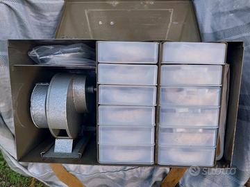 Stupenda cassetta campale mod. 71 del Servizio Tecnico Chimico Fisico dell' Esercito Italiano di circa 50 anni fa. La cassetta veniva utilizzata per prelevare campioni di qualsiasi tipo fossero sospetti da contaminazione biologica. La cassetta ha per corredo, altra cassetta metallica contenente i ricambi. Entrambe le cassetta, segni del tempo a parte , sono intonse e complete Pezzo unico nel complesso. Spese di spedizione da concordare.