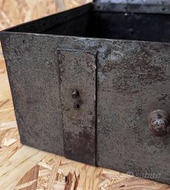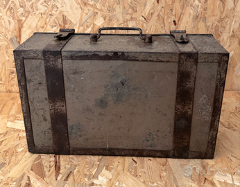 Cassetta militare italiana originale in lamiera d’acciaio, risalente al periodo Regio Esercito / primo Esercito Italiano (circa 1935–1955).