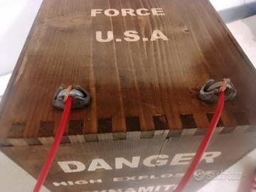 Riproduzione artigianale cassetta Detonatore Special Force U.S.A in eccellente stato come da foto. Le misure sono 39 cm di altezza e 18 cm di larghezza. Oggetto Assolutamente innocuo senza alcuna funzione, frutto solo della mia fantasia, quindi è solo da esposizione per collezionisti o come complemento d arredo per Pub, Ristoranti , Bracerie Negozi di articoli Militari ecc ecc