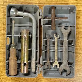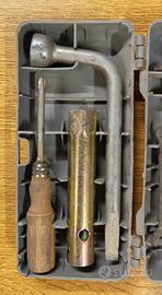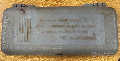 Vendo scatola porta attrezzi Fiat con chiavi originali, tipicamente inclusa come dotazione di bordo in modelli storici Fiat.