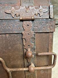 Cassetta portamunizioni in ferro dell'esercito italiano. Ben conservata, completa, meccanismo di chiusura integro. Vuota all'interno. Dimensioni: 30 cm (larghezza) x 20 cm (profondità) x 34 cm (altezza). Per ritiro a Milano