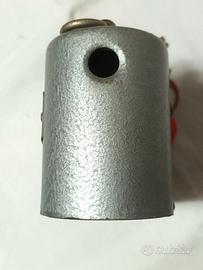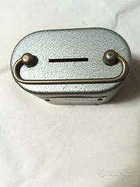 Salvadanaio Cassetta Risparmio Banca Popolare di Modena numerata con chiave, Vintage Raro buone condizioni, in vernice grigia del tipo martellato, solo piccoli segni del tempo vissuto visibili nelle foto reali allegate. Antico Salvadanaio in metallo, Maniglia pieghevole cromata. Misure: cm. 11 x 6 x 8 h. Queste cassette di risparmio a domicilio portatili venivano in genere distribuite nelle scuole durante la Giornata del Risparmio il 31 ottobre di ogni anno. Erano collegate ad un libretto bancario in cui saltuariamente si versavano presso la banca le monete contenute, che accrescevano il valore del deposito. La cassetta veniva quindi riconsegnata vuota e chiusa al cliente per un nuovo accumulo di monete. Non veniva fornita la chiave di apertura che rimaneva in dotazione della banca stessa.