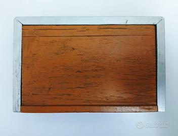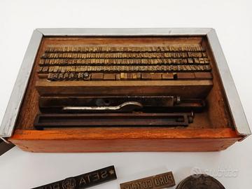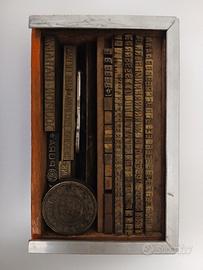 Vendo bellissimo set di caratteri mobili tipografici anni '50, per la stampa a caldo e la tipografia tradizionale. La scatola in legno contiene diverse righe di caratteri in metallo in ottone, che venivano composti manualmente per formare parole e testi. I singoli tipi venivano prelevati dalla cassa e allineati rovesciati, da destra verso sinistra, su uno strumento chiamato compositoio e usati poi su materiali come pelle o carta. Questo oggetto nello specifico, veniva usato per marcare tessuti o prodotti di pregio, etichettatura o branding di prodotti artigianali. In perfette condizioni e completo! Preferirei consegna a mano.