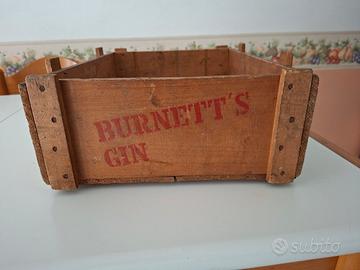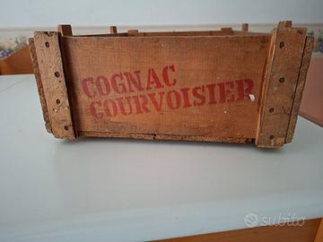 Cassetta legno vintage con impressi i 4 marchi di liquori . Harvey's Sherry Burnett's Gin Haig scotch Cognac Courvoisier. Misura lunghezza cm 44 larghezza cm 31 altezza cm 15. Come si vede da foto il legno è ancora in buone condizioni.