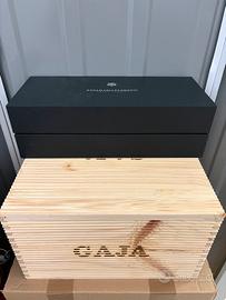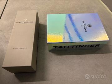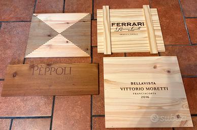 Vendo come da foto cassette di legno di diverso formato, astucci in plastica o cartone rigido e coperchi in legno di diversi marchi famosi di vino italiano e straniero, come nuovi, in perfette condizioni, mai usati. Ideali per arredamento, fai da te, design, decorazione, arte, antiquariato, locali, bar, ristoranti, contenimento, enoteche, collezionisti e appassionati. Dettagli: - Cassetta 6 bottiglie in legno effetto scrigno Luce Frescobaldi, €20. - Cassetta 6 bottiglie in legno Gaja, €15. - Astuccio Ca del Bosco Annamaria Clementi, €10. - Cassetta di legno magnum Chateau Moulin de la Lagune, senza coperchio, €5. - Cassetta di legno 0,75 litri Querciabella Camartina, senza coperchio, €5. - Astuccio per due bottiglie effetto specchio Taittinger, €5. - Astuccio 0,75 litri, Louis Roederer Brut Premier, €5. - Tutti quanti, €60. Transazione serie, solo scambio a mano, nel caso sono disposto a spostarmi. Prezzi trattabili.