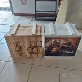 Vendo 5 cassette in legno fatte a baule bianche e marroni distilleria Marzadro. Nuove mai usate. Vendo anche singolarmente. Prezzo €40 x 5