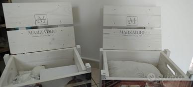 Vendo 2 cassette da collezione in legno bianche della distilleria Marzadro con apertura sia superiore che frontale