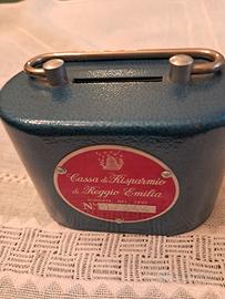 Due cassettine risparmio della Cassa di Risparmio di Reggio Emilia, anni 70, senza chiave, in condizioni perfette (alcune monete ancora all'interno), vendo ad €30,00 cadauna; ritiro a carico dell'acquirente