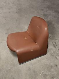 Una comoda poltrona modello Alky disegnata da Giancarlo Piretti nel 1972 e prodotta da Castelli, in colore cioccolato.