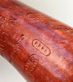 CERTIFICATO DI AUTENTICITÀ, DATAZIONE E VALUTAZIONE ROBIMB TRADE PIPES INTERNATIONAL IDENTIFICAZIONE Marca / Pipemaker: Castello Serie / Linea: Collection Marchiatura: “CASTELLO COLLECTION” – “MADE IN CANTÙ ITALY” – “CARLO SCOTTI” (in ovale) Grado: KKKK (Selezione Alta) Forma: Freehand / Semi-Freehand Luogo di produzione: Cantù (Como), Italia Le pipe Castello rappresentano una delle massime espressioni della tradizione italiana nella lavorazione della radica. Fondata da Carlo Scotti nel 1947 a Cantù, l’azienda si è distinta fin da subito per qualità, innovazione e stile riconoscibile. Le pipe prodotte durante l’epoca Carlo Scotti (anni ’50 – metà anni ’80) sono oggi tra le più ricercate sul mercato collezionistico internazionale. La serie “Collection” identifica esemplari selezionati per qualità della radica e resa estetica, mentre il grado KKKK rappresenta una selezione superiore, caratterizzata da venature marcate e limitata presenza di imperfezioni naturali. CARATTERISTICHE TECNICHE Materiale: Radica d’erica di alta qualità (origine mediterranea) Finitura: Liscia, contrasto naturale caldo Castello Venatura: Straight grain e flame grain ben sviluppate Bocchino: Originale Castello in acrilico nero, lucidato Lavorazione: Fatta a mano STATO DI CONSERVAZIONE Condizione: Solo rodata Fornello internamente pulito e regolare Bordo superiore in ottimo stato, con lievi segni d’uso Assenza di crepe, bruciature o difetti strutturali Bocchino originale ben conservato Valutazione stato: Ottimo – 9.5 / 10 DATAZIONE Sulla base delle marchiature e delle caratteristiche produttive: 👉 Periodo di produzione stimato: anni ’70 – metà anni ’80 👉 Piena epoca Carlo Scotti NOTE COLLEZIONISTICHE Grado KKKK di fascia alta Marchiatura Carlo Scotti autentica Esemplare rappresentativo della produzione classica Castello Elevata appetibilità sul mercato internazionale 💰 VALORE DI MERCATO: EURO 450 Determinato sulla base di vendite effettive su mercati internazionali