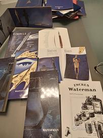 Infine ci sono una decina di brochures/catalogo che illustrano le più importanti stilografiche Waterman di quegli anni: Charleston,Preface, Edmond, Hemisphere, L'Etalon, Carene,Man 100 e 200.