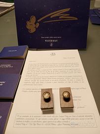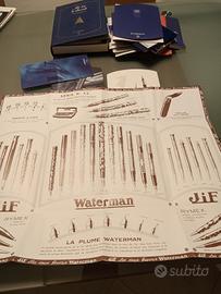 Si tratta del materiale promozionale e pubblicitario raccolto negli anni fra il 1996 ed il 2003 da un collezionista di penne stilografiche Waterman. In particolare in quegli anni per fidelizzare i propri collezionisti la casa produttrice promosse delle iniziative come L'albo d'oro dei Collezionisti(settembre 1997) ed il Club Pennino d'oro (maggio 1999-novembre 2002). Di queste iniziative sono in vendita il raccoglitore dell'Albo d'oro con la storia della casa, le descrizioni accurate delle novità Waterman di quegli anni e gli omaggi natalizi come il segnalibro di metallo dorato a forma di pennino, due pennini dorati da stilografica,due miniature di tampone assorbente con logo Waterman ed una serie di libriccini blu contenenti aforismi,brevi racconti e storie legate al mondo della penna.