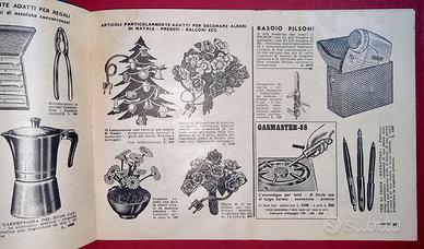 Catalogo generale 164 ditta Beco - dicembre 1959. Album oblungo in-8°(cm. 23x16,2)/pp. 32 inclusi i piatti con decine e decine di FIGURE in bianco e nero di tipo xilografico. Brossura editorilae a graffa. Illustrati OROLOGI, da polso, da tavolo, sveglie, da muro, a cucù, a cucù giganti, a casetta dolomitica Val Gardena, GIOCATTOLI di cui alcuni in legno colorato, a molla, a meccamismi complessi, smontabili, snodabili; gli altri sono fisarmoncihe a bocca o vere fisarmoniche o strumenti a fiato per regazzi, Bigiotteria e oreficeria., temperini, cancelleria, accendigas, decortazioni, ciondoli ecc. Veramente in ottime condizioni solo normali segni del tempo, astenersi perditempo massima serietà, grazie.