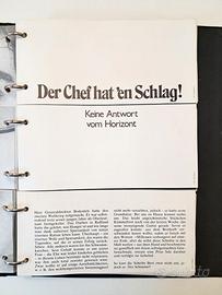 "Letraset Typen", particolare catalogo tipografico per la grafica, l'arte e l'editoria, che si autodefinisce "La rivoluzione copernicana nel pensare agli schemi tipografici". Contiene testi reali e non auto generati. Impaginazione artistica. Ogni pagina è divisa in 3 parti che corrispondono da un lato agli occhi, naso e bocca di un volto umano; dall'altro, al titolo, sottotitolo e corpo del testo di un determinato carattere tipografico. Ogni sezione può essere combinata a piacere con le altre. Tutti i titoli e i sottotitoli sono composti con Letraset Instant Lettering e Letragraphica. Compreso di indice alfabetico dei font. Formato 24x32cm, in raccoglitore ad anelli originale nero in stoffa. 1976, edizione in tedesco, 1,2 kg. Pagine non numerate (molte). Raro. Storia della tipografia. Come nuovo. Lievi tracce di ruggine sugli anelli del raccoglitore. Spedizione tracciata e ASSICURATA CON COPERTURA TOTALE con Poste Italiane.
