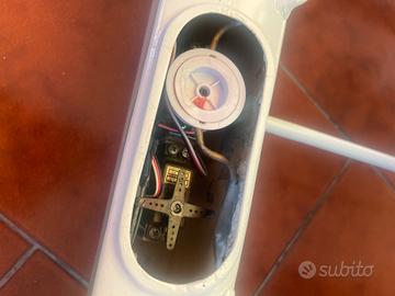 Catamarano completo di servocomandi (servo verricello nuovo da 10,6 kg di tiro con circuito chiuso)con tre rande e due fiocchi. Dimensione scafo cm 140 (150 compresi i timoni) x 60. Albero altezza cm 240.