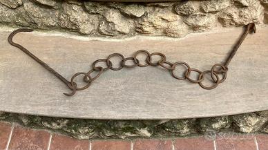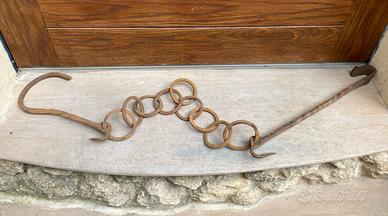 N° 3) Antica catena da focolare per camino, 12 anelli